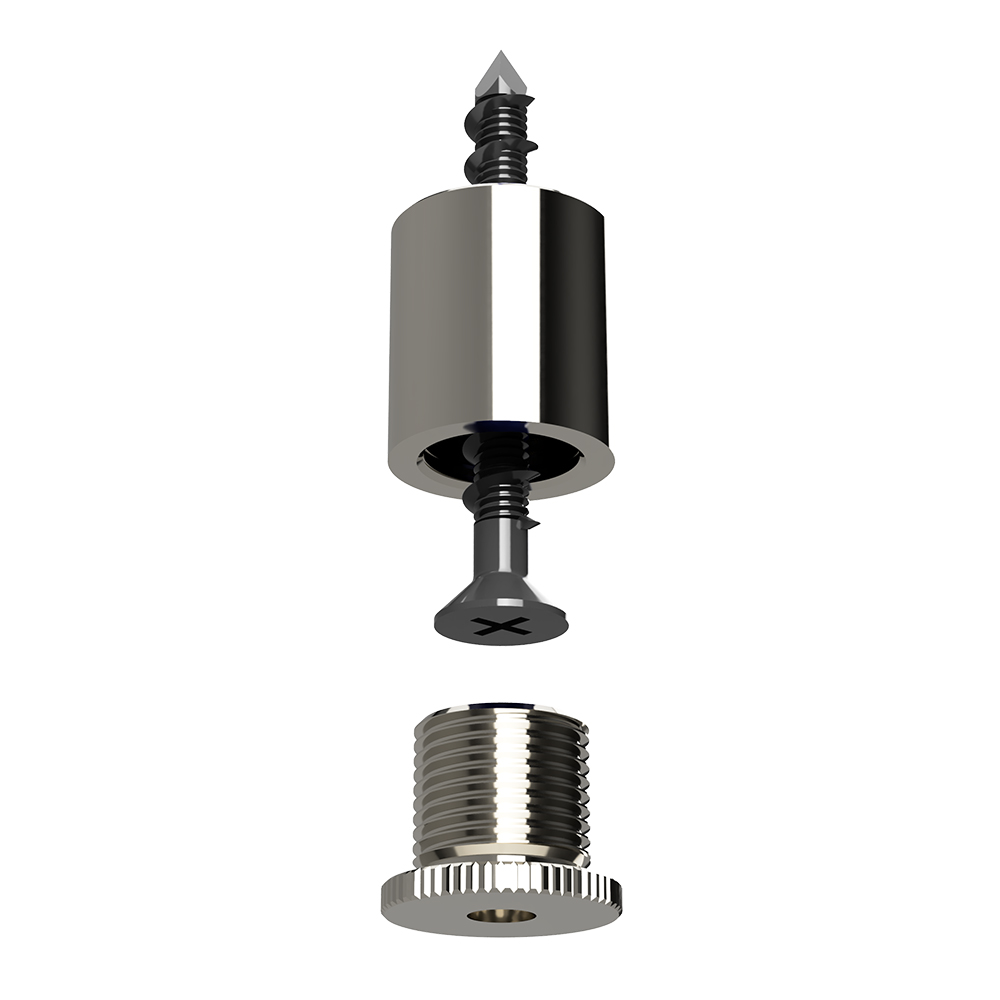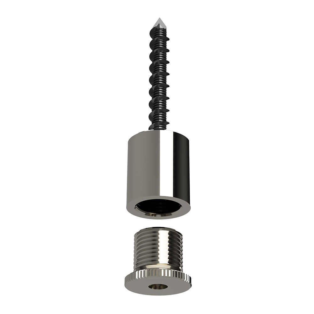Our Barrel Ceiling Fixing is a Architectural ceiling attachment, manufactured from bright nickel-plated brass – designed to provide a sleek, aesthetic fastening to the soffit whilst offering low visual impact. The attachment can be fitted directly to a ceiling or mounted to a fixture and used in conjunction with the Zip-Clip range of architectural supports to build a complete wire rope suspension system.