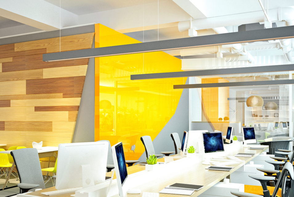 - Acoustic ceilings, islands, or baffles