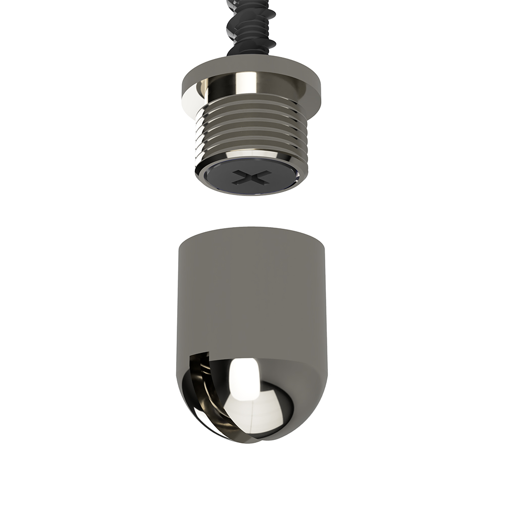 Our domed ceiling attachment is an architectural attachment, manufactured from bright nickel-plated brass, with an integral slot – designed to provide a sleek, aesthetic fastening to the soffit whist offering low visual impact.