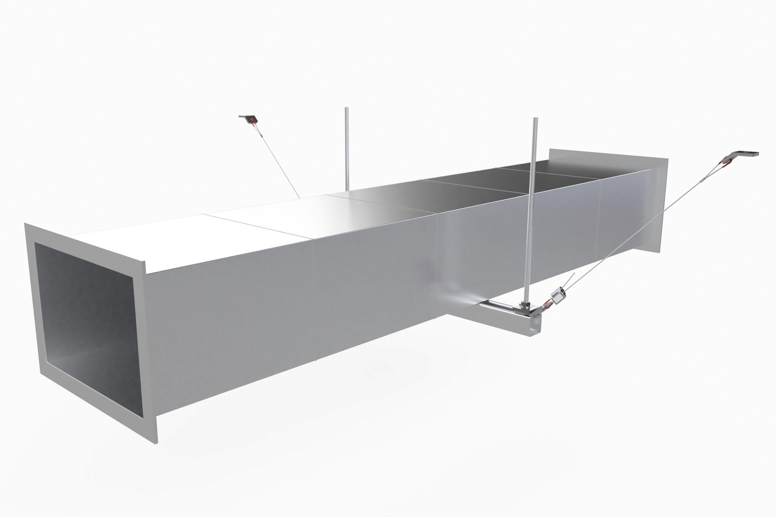 Seismic design standards require that non-structural services must be braced at regular intervals. Appropriate brace spacings must be determined by a qualified structural engineer.