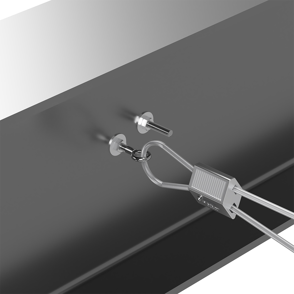 • Pass through or around your required suspension and back through the device leaving 15 cm of wire protruding.